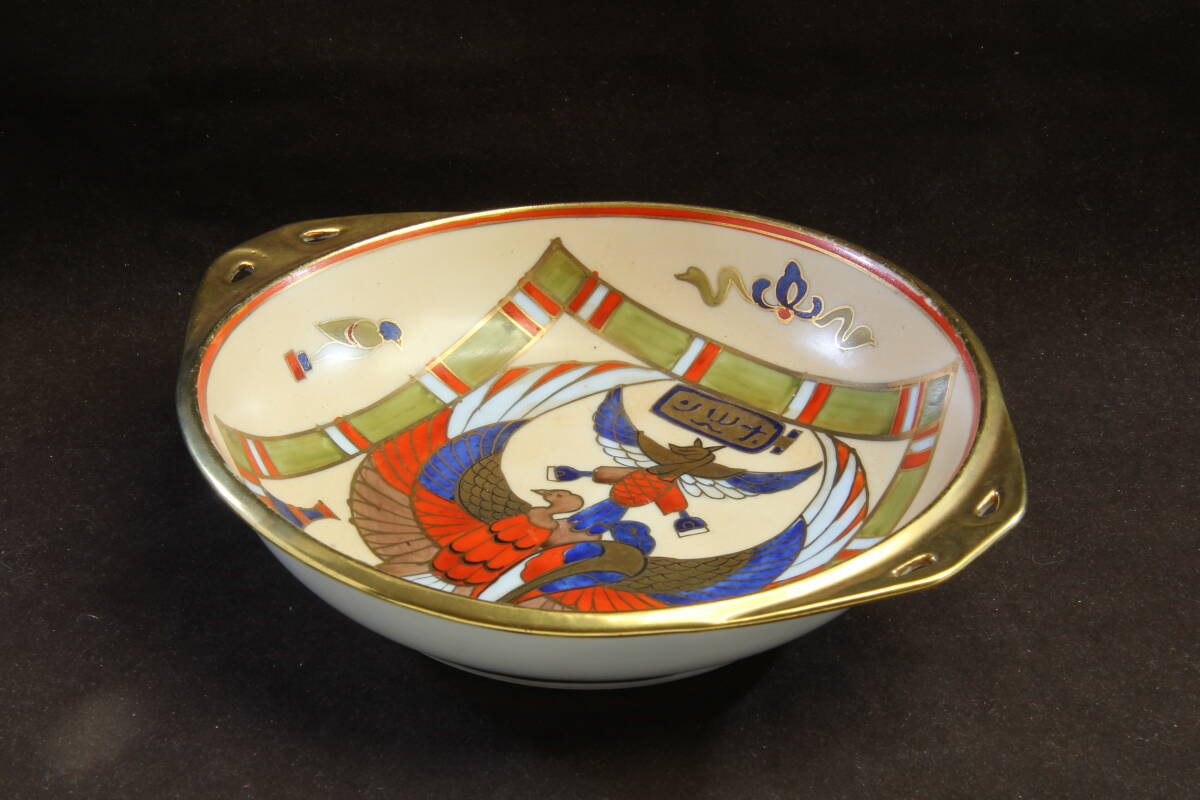 > 3544 オールドノリタケ ボウル(ハンドル付) M-NIPPON 明治 金彩縁取り エジプトモチーフ