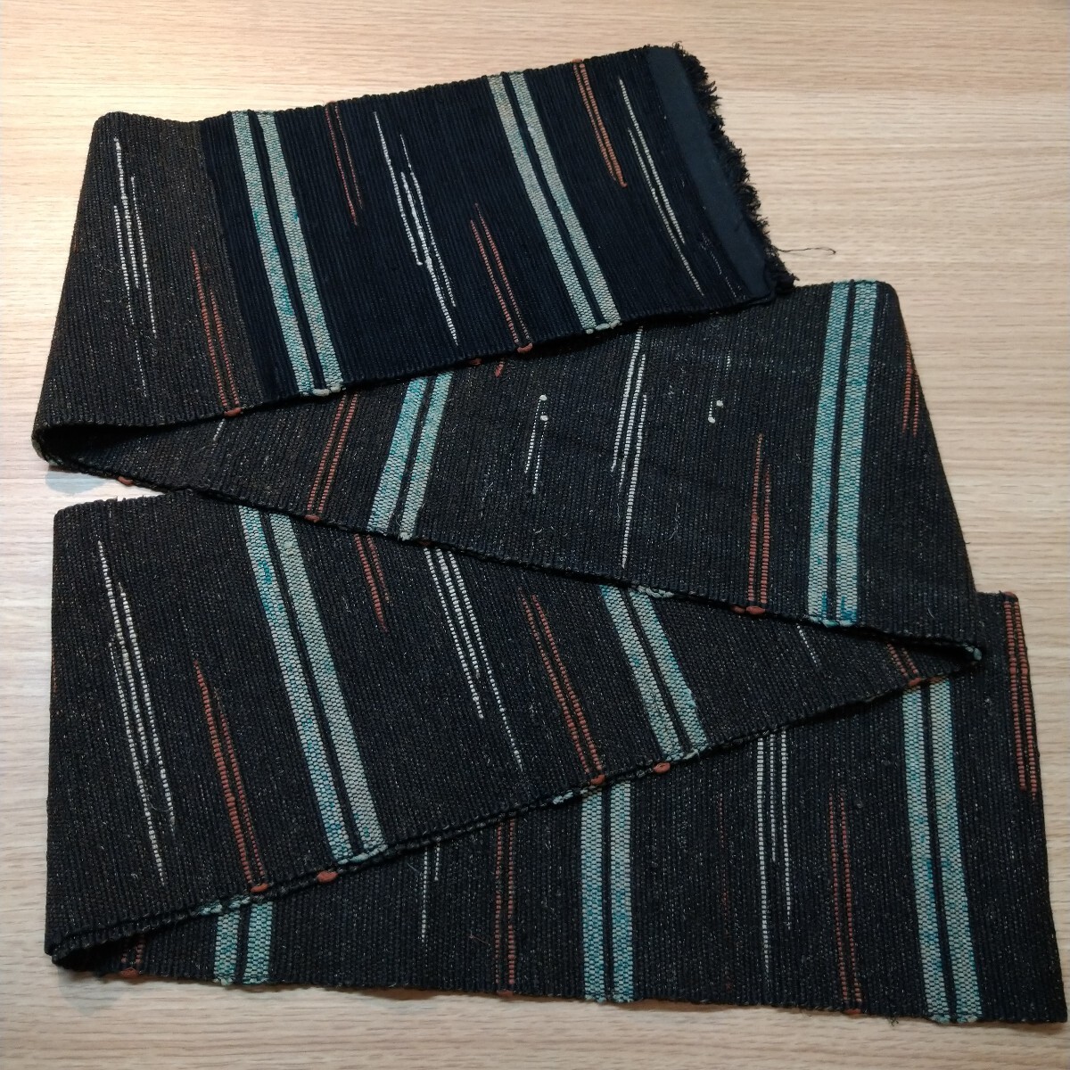 - (s)Os298 裂織 リメイク 正絹 古布半幅帯 長さ292cm 巾 16cm
