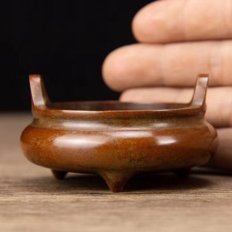 - 送料無料! 紫銅香炉 香炉 沖天耳 三足 銅 銅香炉 低腹 橋耳 三足 香炉 招財進宝 銅香炉 観賞 置物
