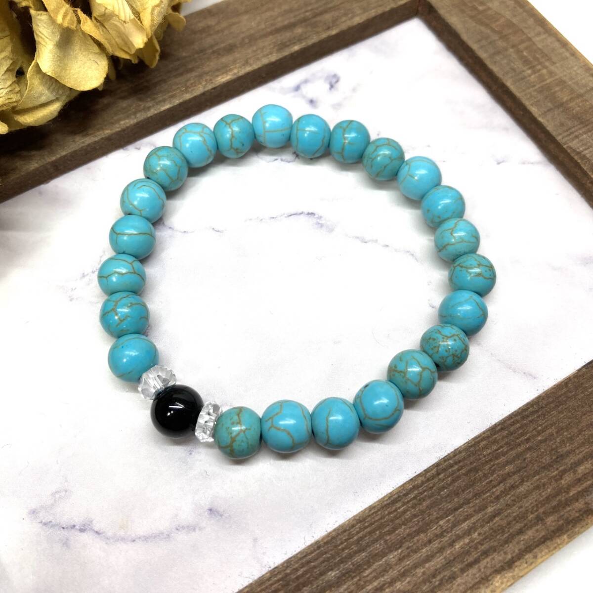 - モリオン&ターコイズ ブレスレット パワーストーン レディース 女性 金運 恋愛 開運 数珠ブレス お守り