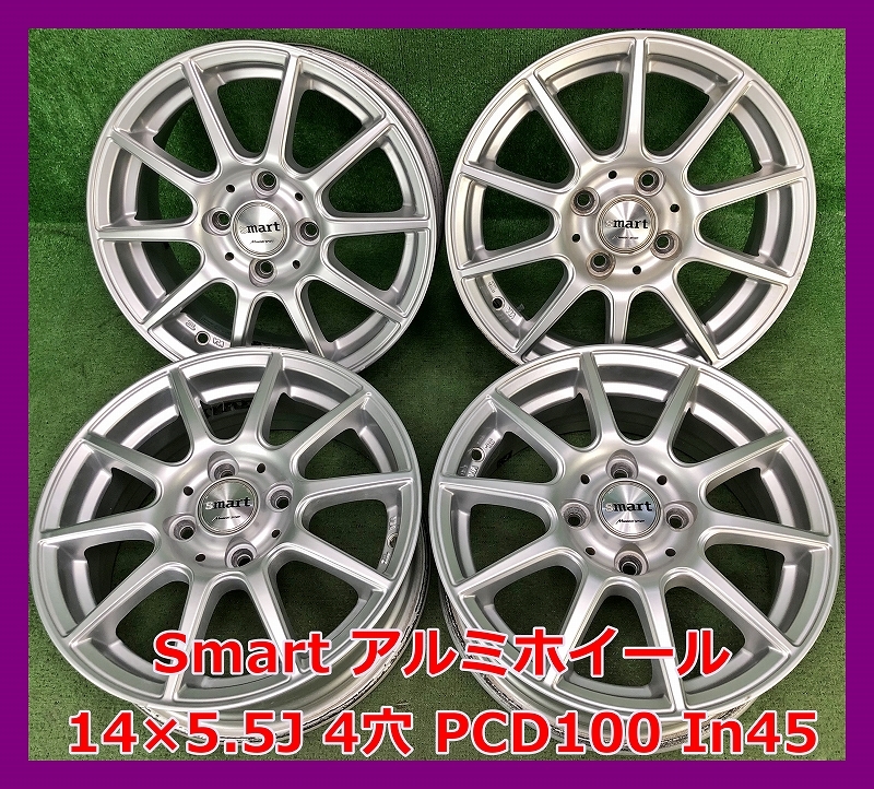- ★14インチ Smart 中古 社外 アルミホイール 4本 4穴 PCD:100 In45★