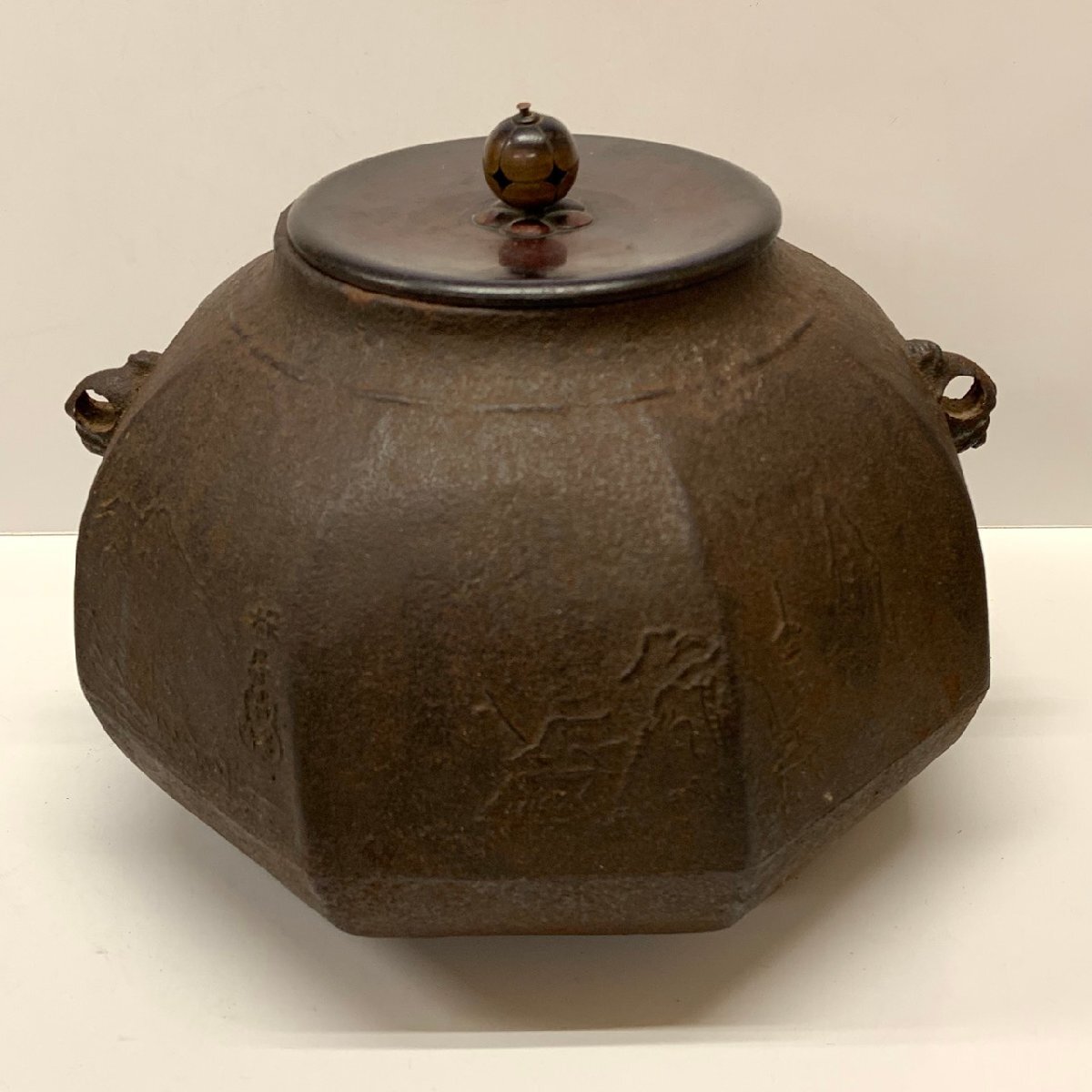 【長期保管品】鉄釜 茶釜 八角釜 茶道具 風景模様入り【送料お届け地域別】