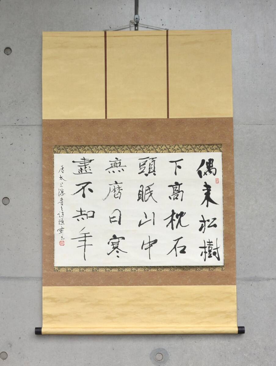 - 71◆初荷です ◆掛軸 書家 加茂源斎 五言絶句 真作 紙本 ◆共箱 横物 唐代の太上隠者の詩