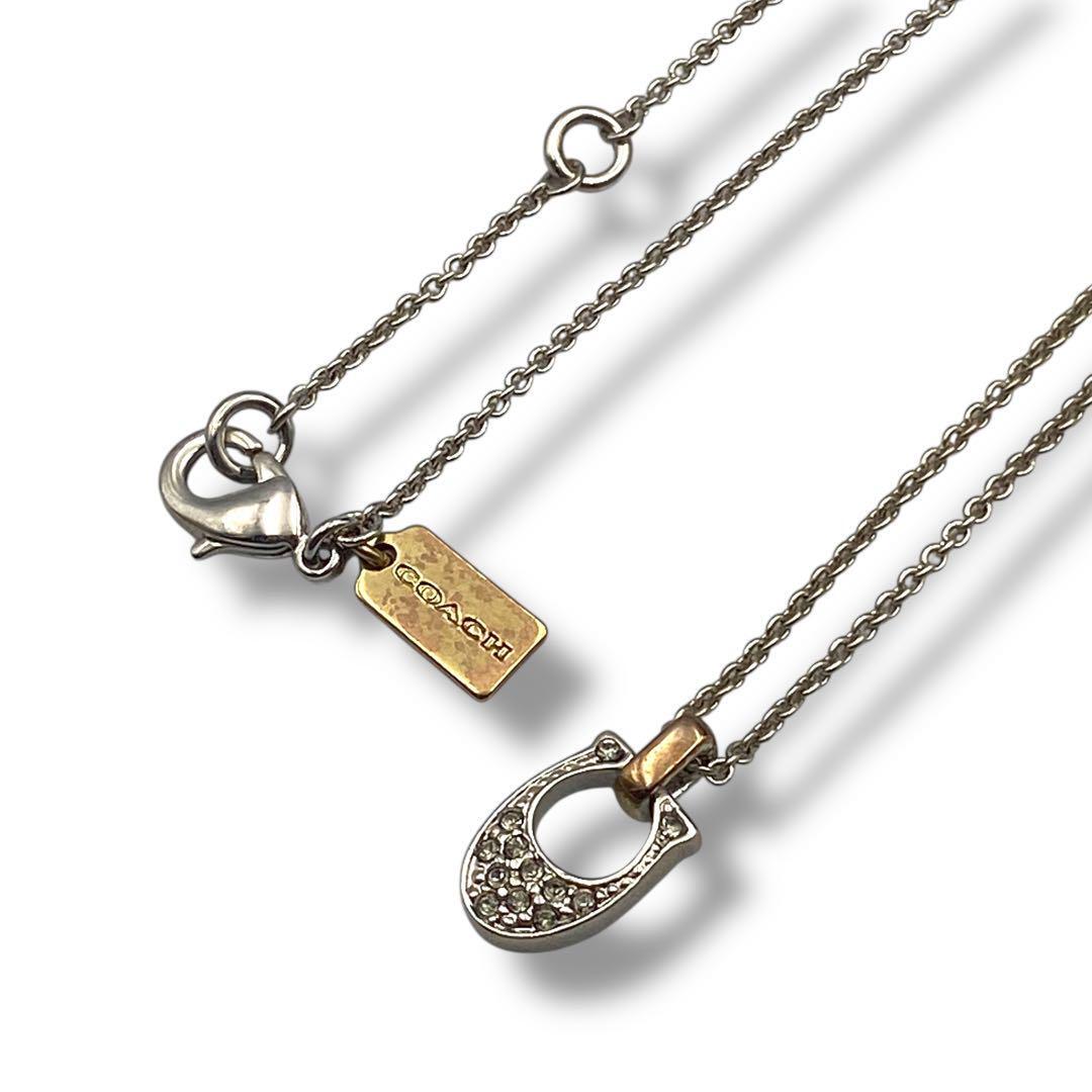 - 美品 COACH コーチ ネックレス ロゴ ペンダント ラインストーン 馬蹄 銀