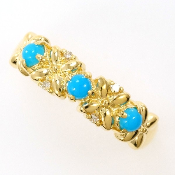 K18YG リング 指輪 14号 ターコイズ ダイヤ 総重量約3.3g 中古 美品 送料無料☆0315拍卖