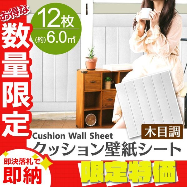 > 【限定セール】ホワイト 12枚セット 木目調 クッションシート 約70×70cm 壁紙シール おしゃれ 簡単 DIY クッション フォームブリック