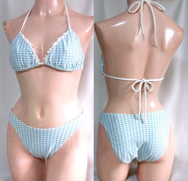- ★☆かわいい 柔らか水色チェック三角ビキニ水着☆★