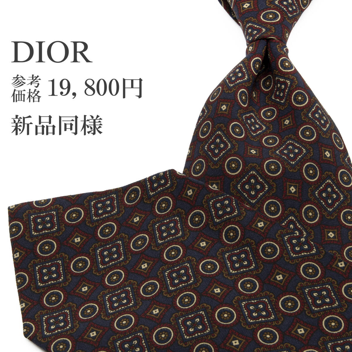 > 送料無料 ディオール ネクタイ レギュラータイ 新品同様 シルク ネイビーブルー 赤 ワインレッド 茶色 アラベスク Y2K ブランド 綺麗 P496