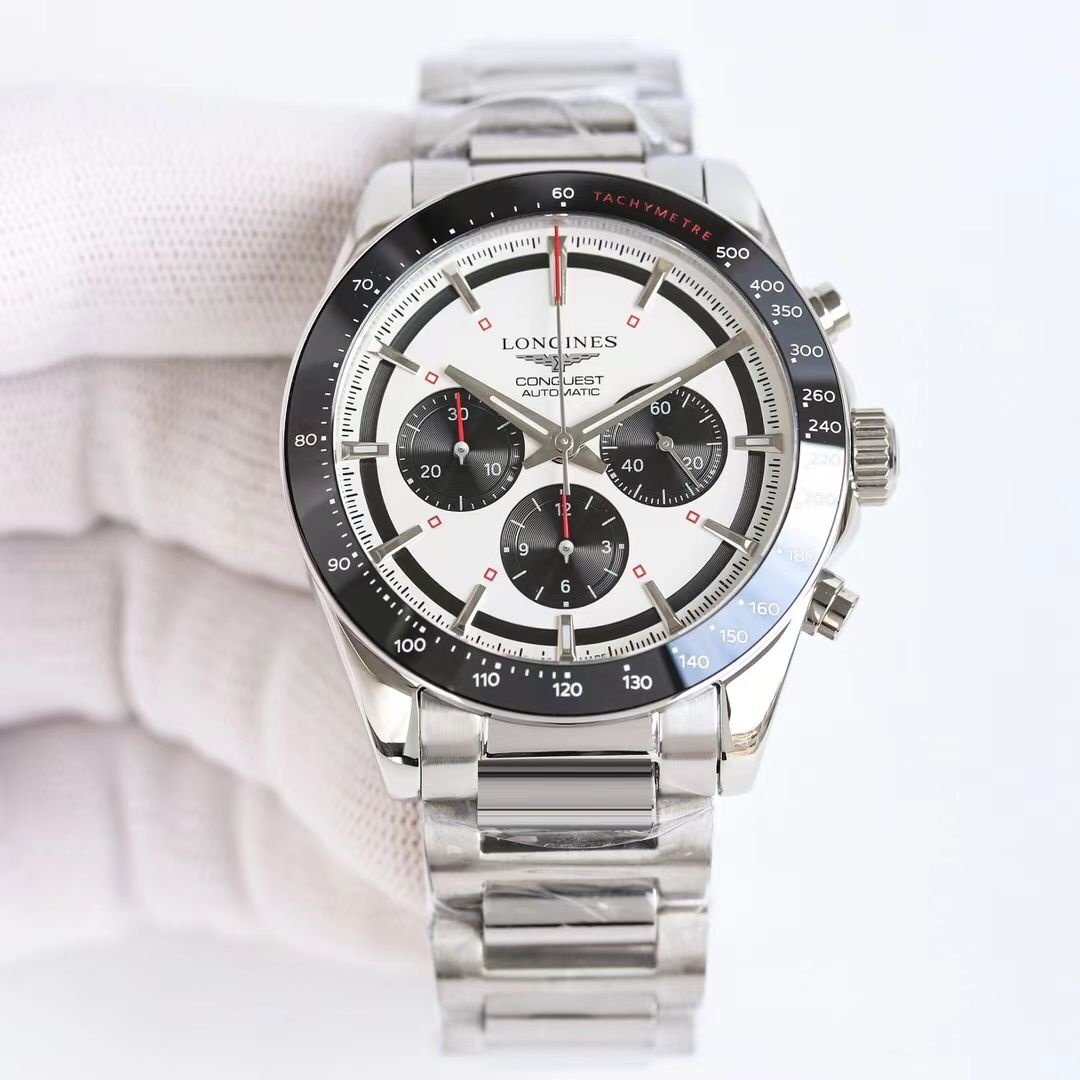 > LONGINES ロンジン コンクエスト クロノグラフ ウォッチ 腕時計 自動巻き 42mm シルバー文字盤 L3.835.4.72.6