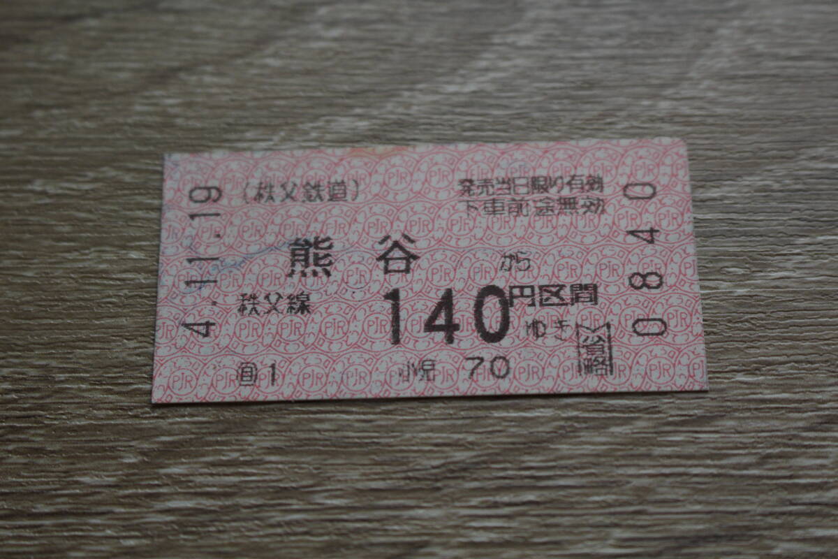 - 切符 熊谷 平成4年 秩父鉄道 秩父線 軟券 乗車券 電車 鉄道 140円区間