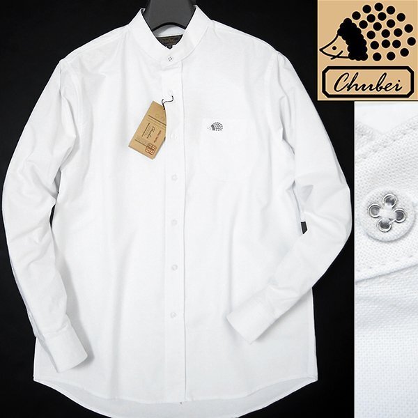 > 新品 チュウベイ オックスフォード バンドカラー シャツ LL 白 【CH1451093_7_LL】 CHUBEI メンズ 長袖 ハリネズミ刺繍 OX
