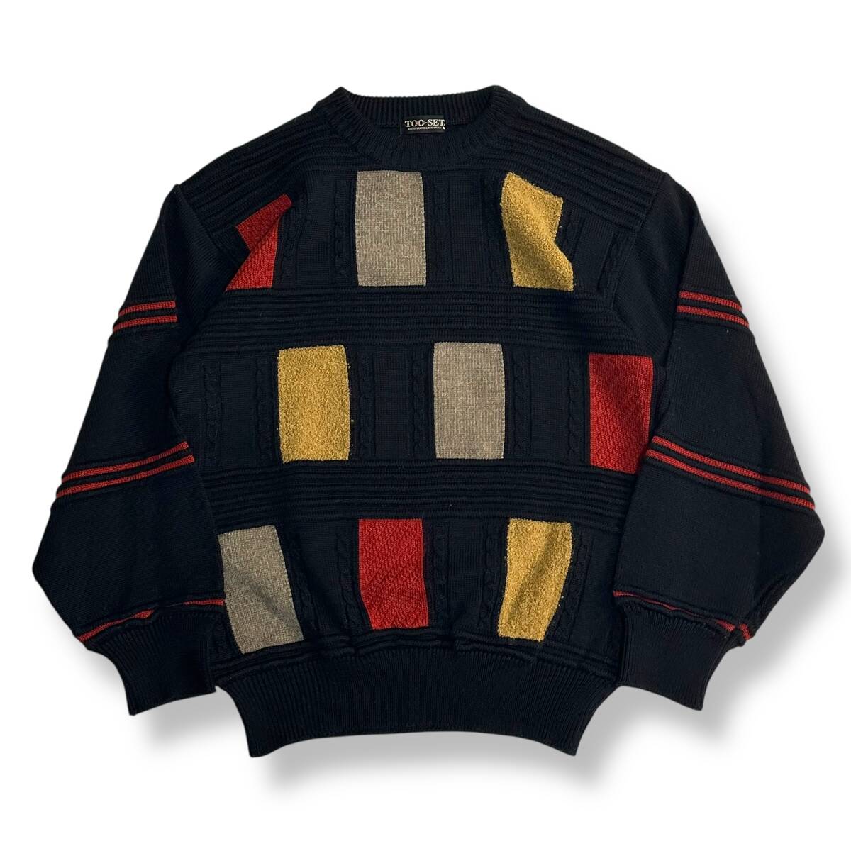 - 秀逸 レア【TOO-SET】VINTAGE 80s 90s パネル&ボーダー ビンテージレトロニット 古着ミックス 日本製 クルーネックセーター