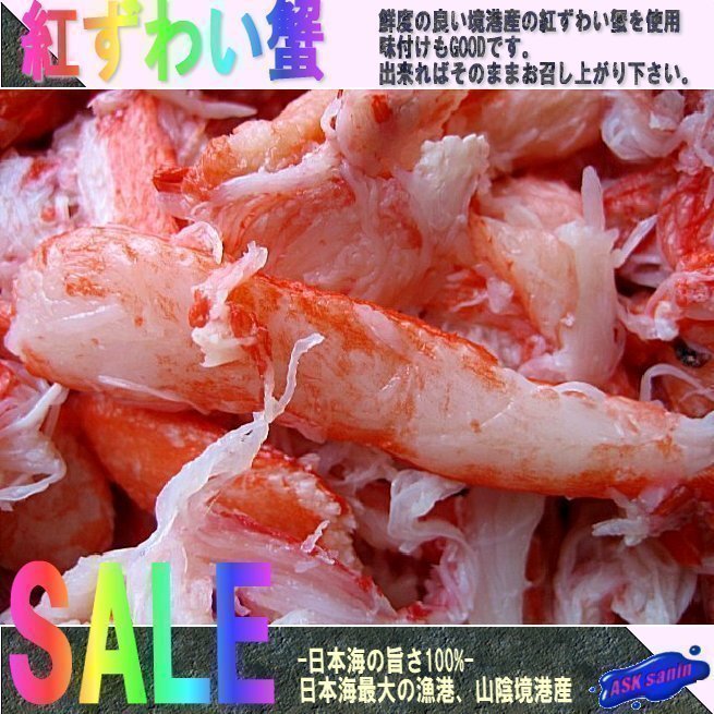 . 鮮度の良い境港産の紅ズワイ蟹をボイル後急速冷凍しむき身のしました。 味付けもバッチリです。できれば、そのまま召し上がり下さい。 また、寿司・天ぷら・かにしゃぶ等にも使用できます。