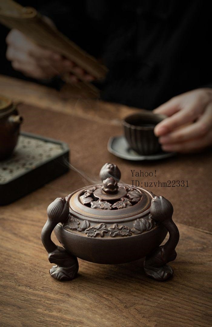 - 三本足の蓮の香炉 茶道具 香道具 工芸品 美術品 置物
