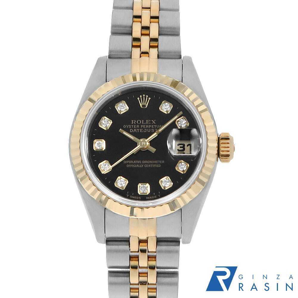 - ロレックス デイトジャスト 10Pダイヤ 69173G ブラック W番 中古 レディース 腕時計