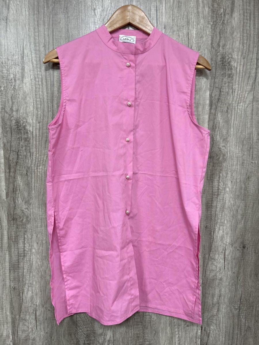 > ネコポスOK mou ノースリーブ パールボタン チュニック丈 ブラウス シャツ sizeM/ピンク ■◆ レディース