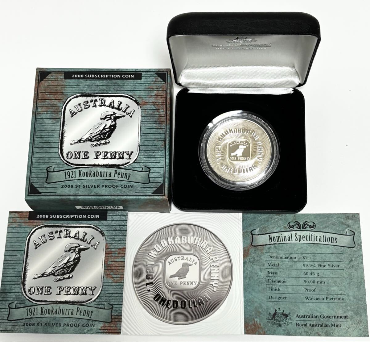 - 2008 オーストラリア 1ドル 銀貨 1921 クッカバラ Australia Silver Kookaburra one Penny シルバープルーフコイン カワセミ