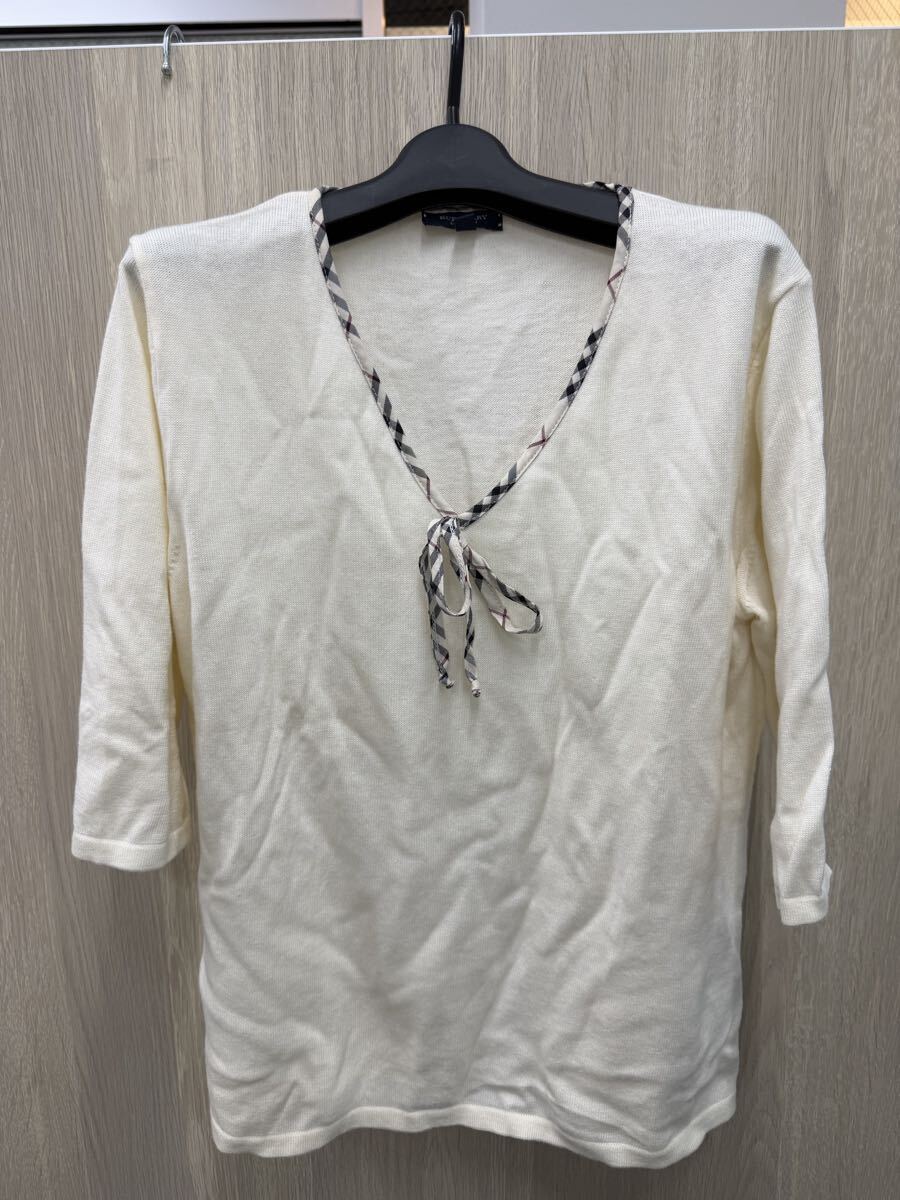 - BURBERRY LONDON バーバリーロンドン 七分袖ニットトップス XL イタリア製 ノバチェック リボン付き アイボリー系 現状品 プレミアム