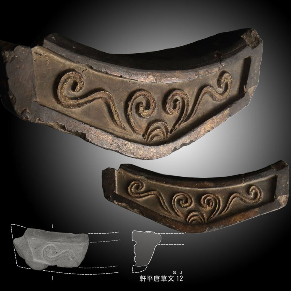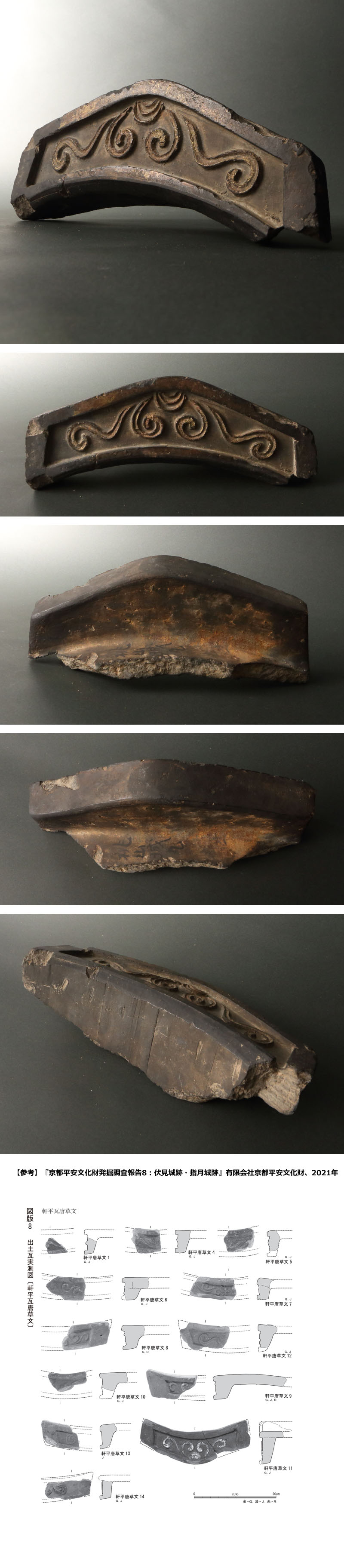 - 【深和】桃山期◆伏見指月城金箔軒平瓦 (古瓦 瓦当 和瓦 中世瓦 近世瓦 伏見城 織豊系城郭 金箔瓦 高麗瓦 滴水瓦 出土品 発掘品)