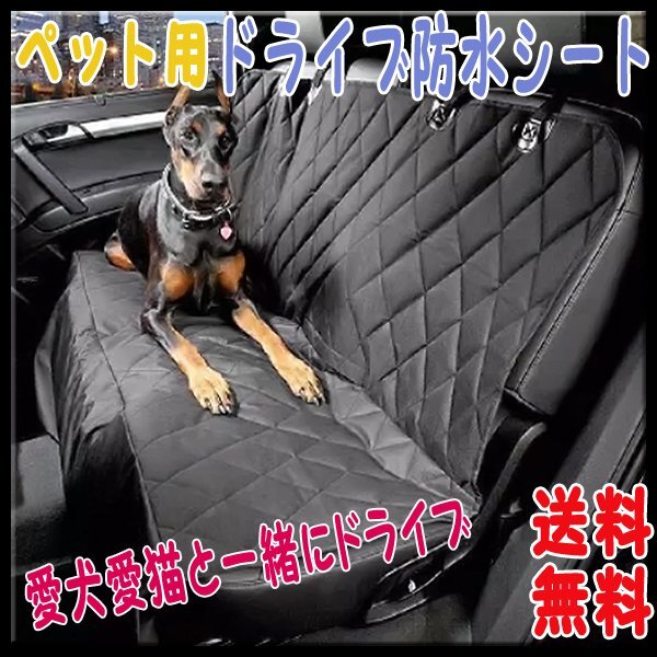 - 送料無料 ペット ドライブシート ブラック キルティング /防水 防汚 ドライブ 旅行 車 車載用 小型 中型 犬 後部座席 黒 オックスフォード
