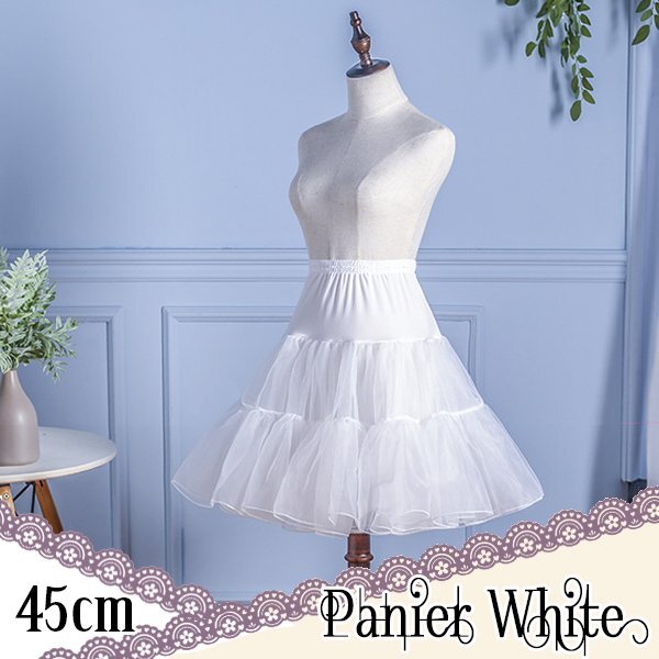 - 送料無料 二層 パニエ ホワイト 45cm インナースカート インナー アンダースカート ボリュームアップ スカート ワンピース ドレス ロリータ