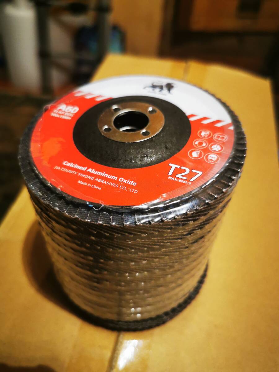 - 12枚(鉄工用) フラップディスク #60/内径15mm 100mmグラインダー用 カーボンプレート (強化)焼成酸化アルミナ ペーパーディスク