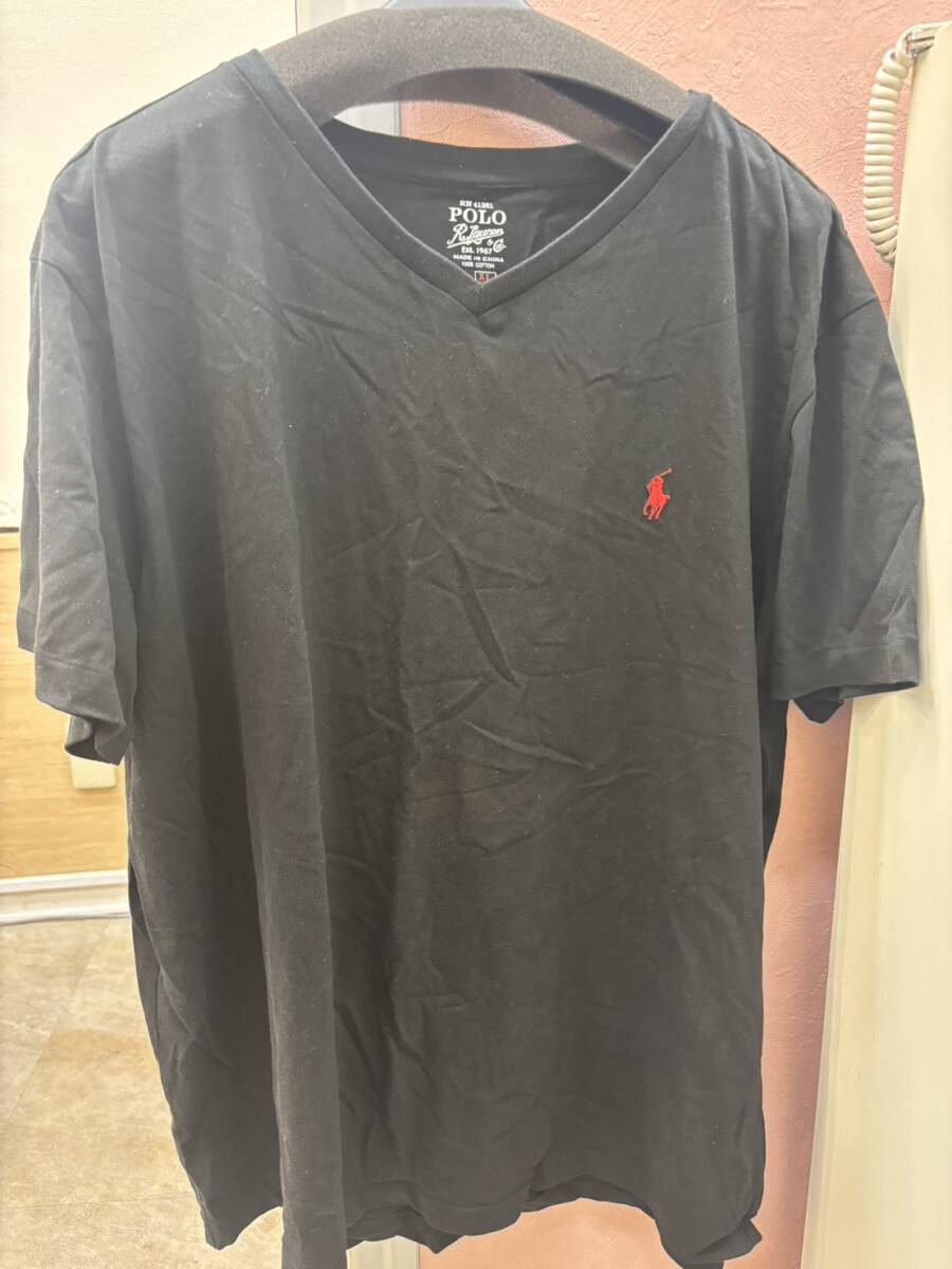 - 【最終出品!!】ポロラルフローレン 半袖Tシャツ Vネック ポニーロゴ刺繍 ブラック サイズXL