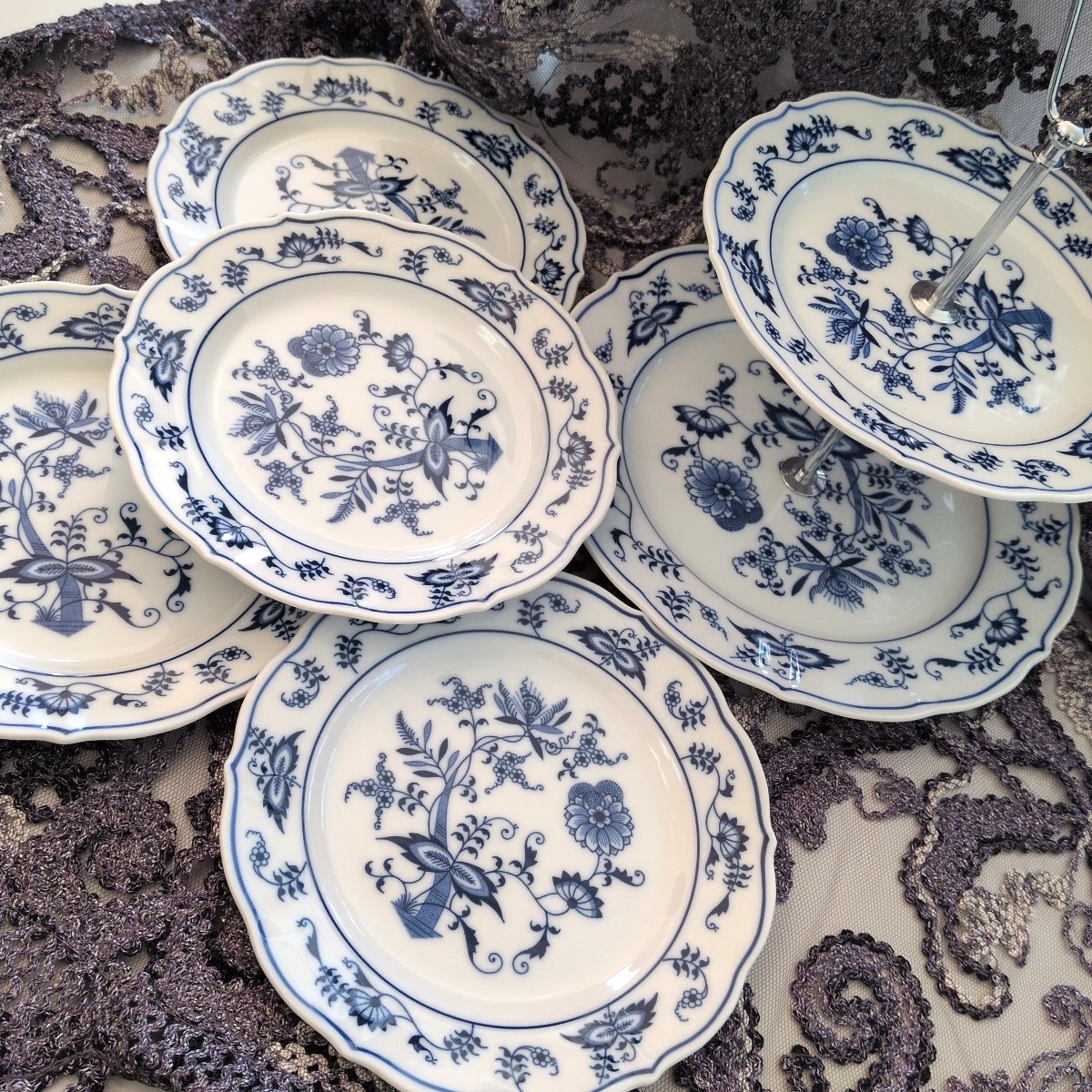 > ブルーダニューブ Blue Danube 花柄 プレート 飾り皿 アンティーク デザートスタンド 長期保管