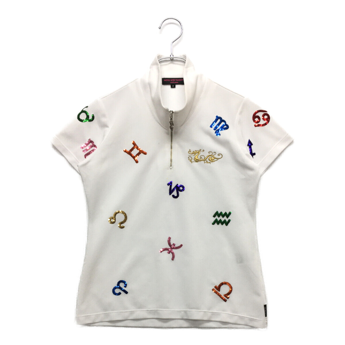 > coco 中古 ダンスウィズドラゴン レディース 半袖シャツ 2(M) 白 ホワイト ハーフジップ 星座柄 ネコパケ発送可 91981