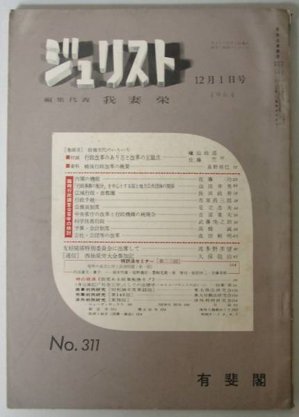 ●「ジュリスト」 1964年12月1日 NO.311