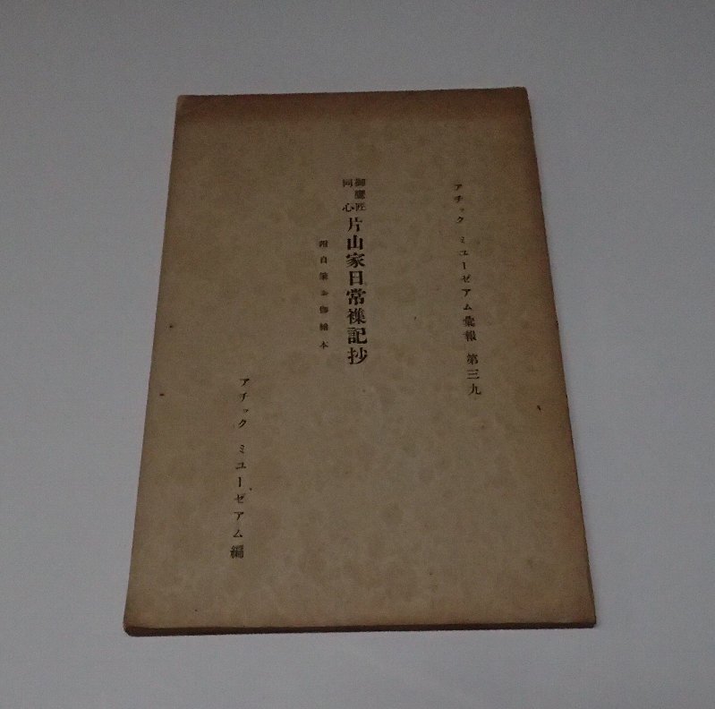 ●「御鷹匠同心片山家日常襍記抄 附自筆お伽絵本」  アチックミューゼアム編 アチックミユーゼアム彙報・第39