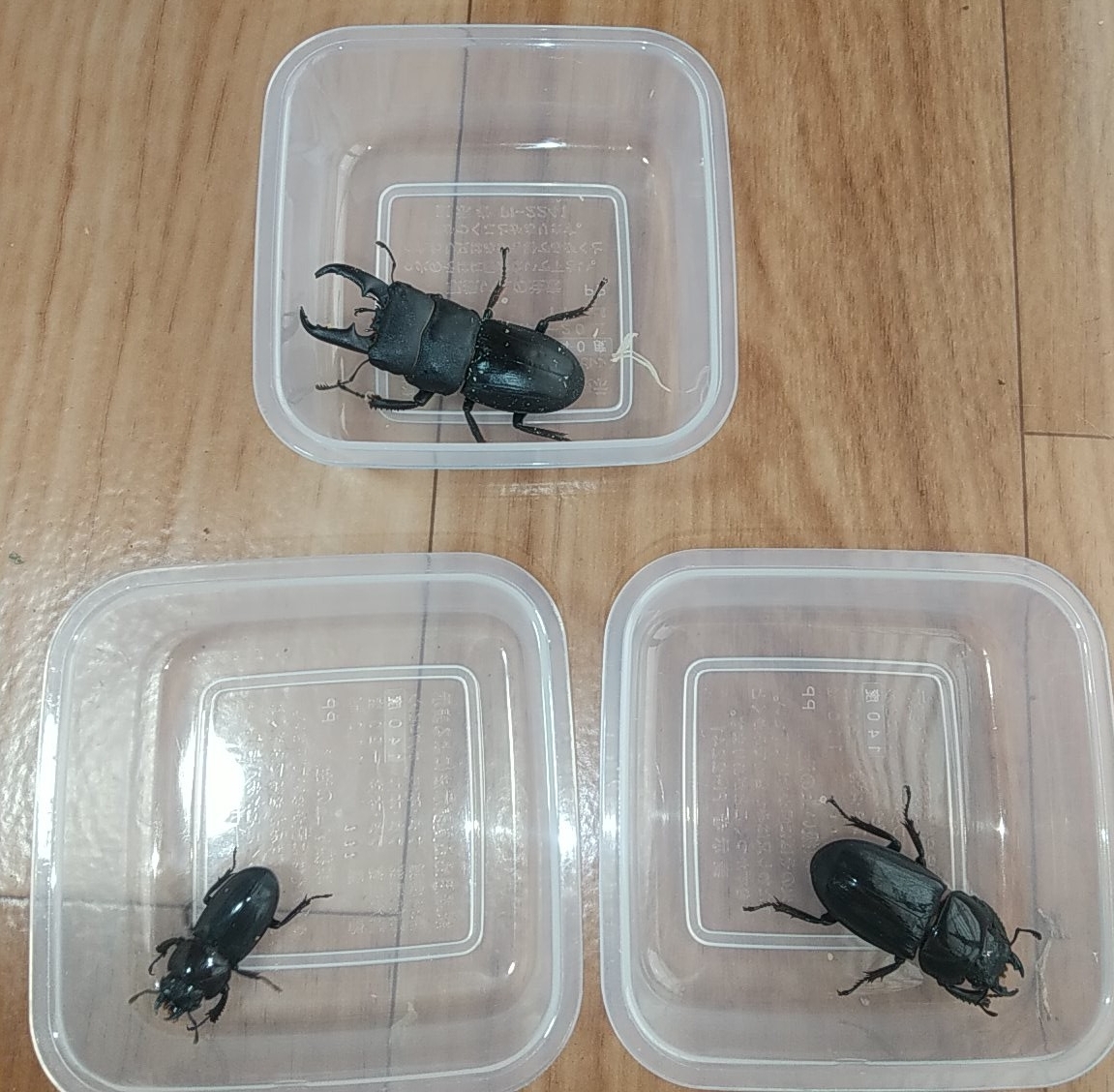 > 栃木県産 ヒラタクワガタ トリオ(オス 1匹 メス 2匹) 自己採集血統 ①