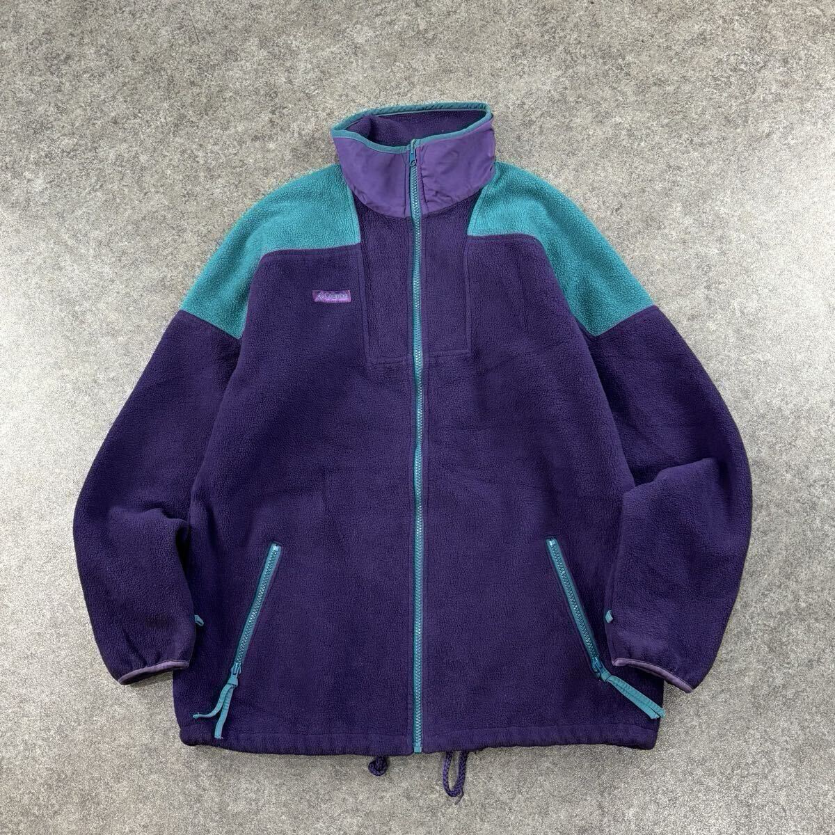 - USA製 90s Vintage Columbia コロンビア 三角タグ フルジップ フリースジャケット バイカラー パープル/ターコイズ ヴィンテージ メンズ