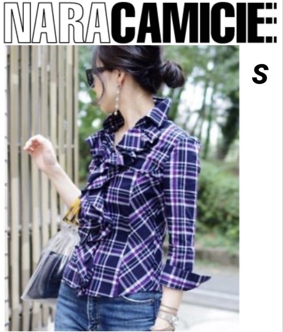- NARACAMICIE ナラカミーチェ 衿付きフリル チェック 七分袖 シャツ S ブラウン系