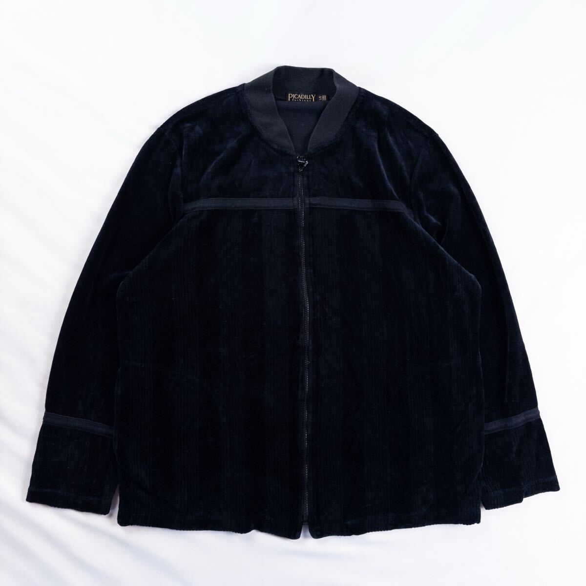 > US Vintage PICADILLY ポリエステル 起毛 ベロア ベルベット 立体 3D ブラック 黒 ジップアップ パーカー ブルゾン