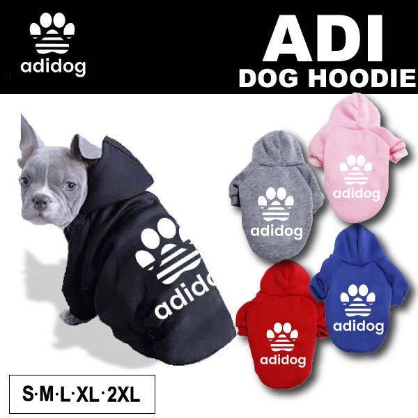- 送料無料 NEWアディドッグ 裏起毛 トレーナー 5色 S M L XL XXL パーカー ドッグウェア 犬用 長袖 パロディ スエット ドッグウェア