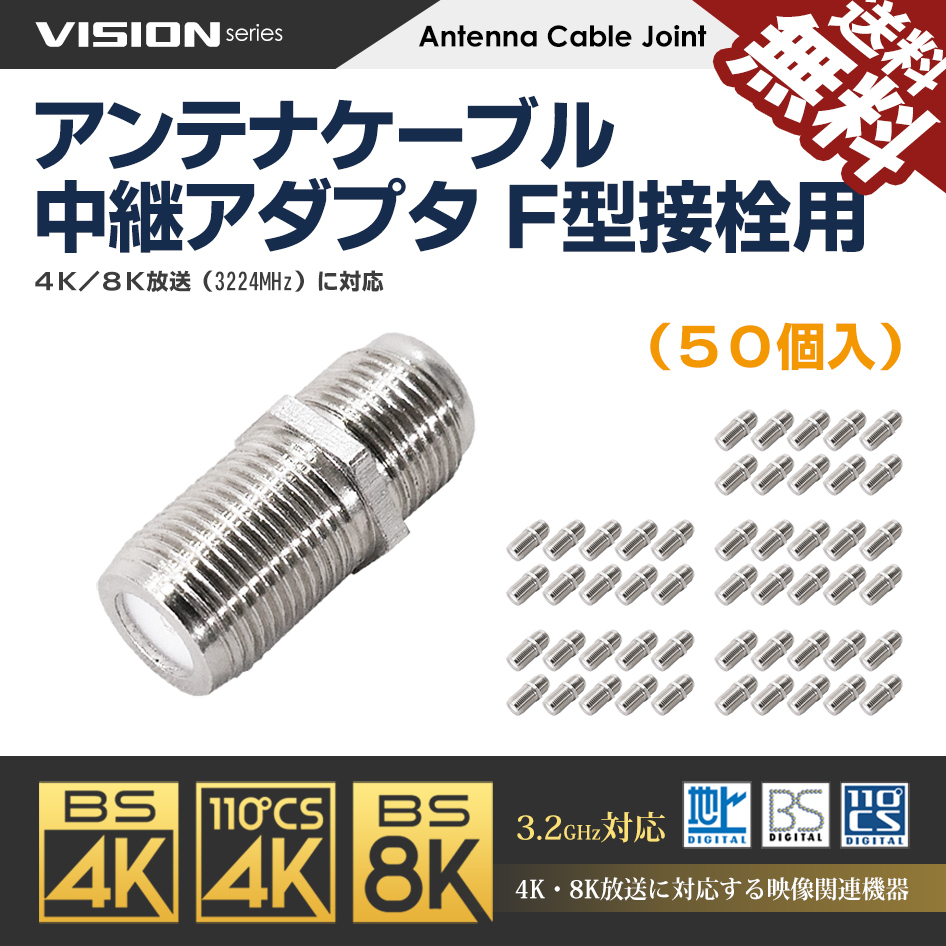 - アンテナケーブル 中継アダプタ 50個セット 911050 F型 接栓用 4K8K対応 同軸ケーブル 地デジ BS CS TV 延長 ネコポス 送料無料