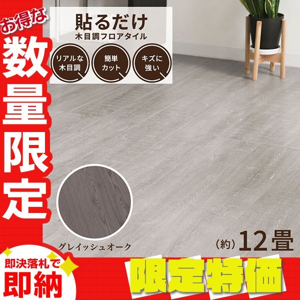 - 【限定セール】木目調 フロアタイル 約12畳 144枚セット 貼るだけ シール 接着剤不要 リノベーション 床材 DIY リフォーム グレーオーク