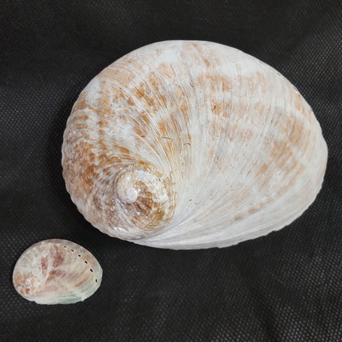 - ウスヒラアワビ 超老成個体と特小個体のセット 貝殻 標本 アワビ 自然科学