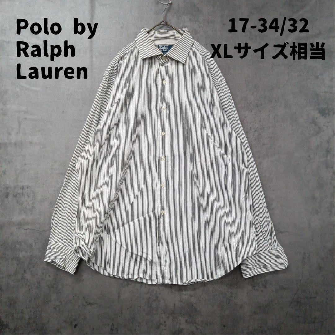 - ポロラルフローレン シャツ 白黒 ストライプ柄 長袖 ビジネス 定番【6050】