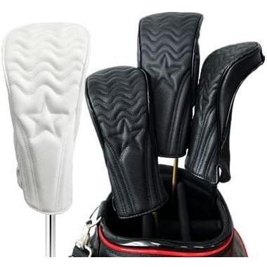 > 高級PUレザー ゴルフヘッドカバー ドライバー用 440cc 460cc ウッド用 ユーティリティ UT用 カバー スターSTAR 黒 白 単品 1点