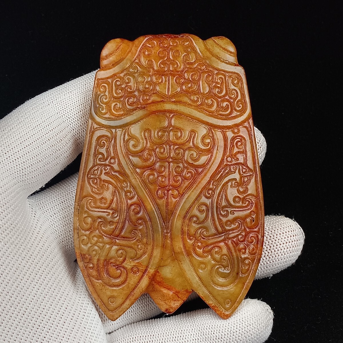 - ★24時間以内発送★大型 石器 天然古玉 土沁 細工彫 玉セミ 根付 掛飾 文鎮