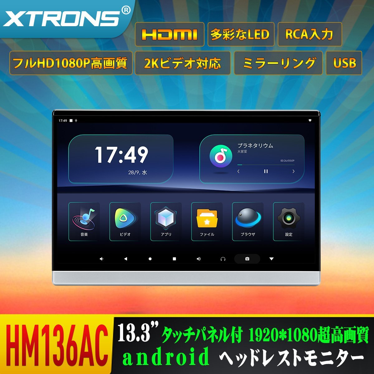 - HM136AC▲ XTRONS 13.3インチ大画面 Android リアモニター フルHD高画質 HDMI入力 RCA入力 ミラーリング対応 USB 軽薄1個セット