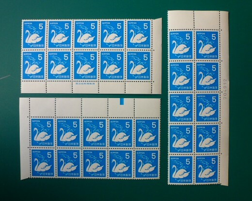 > 国立銘版より 5円 コブハクチョ カラーマーク上と銘版と計数 各10枚ブロック 未使用 完美品 H-31-1