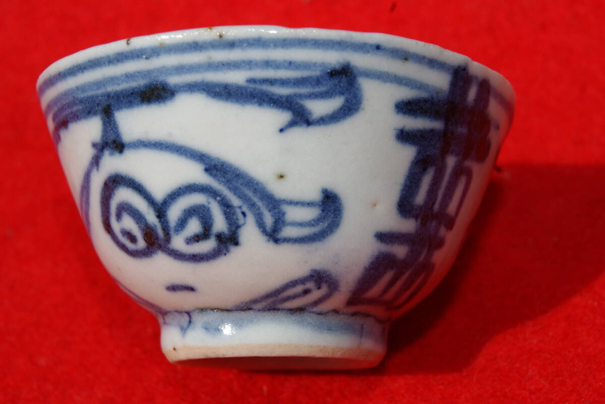 - B113★ 古陶時代不明中国・ 染付・酒盃 茶道具 茶器 ぐい呑み 1客