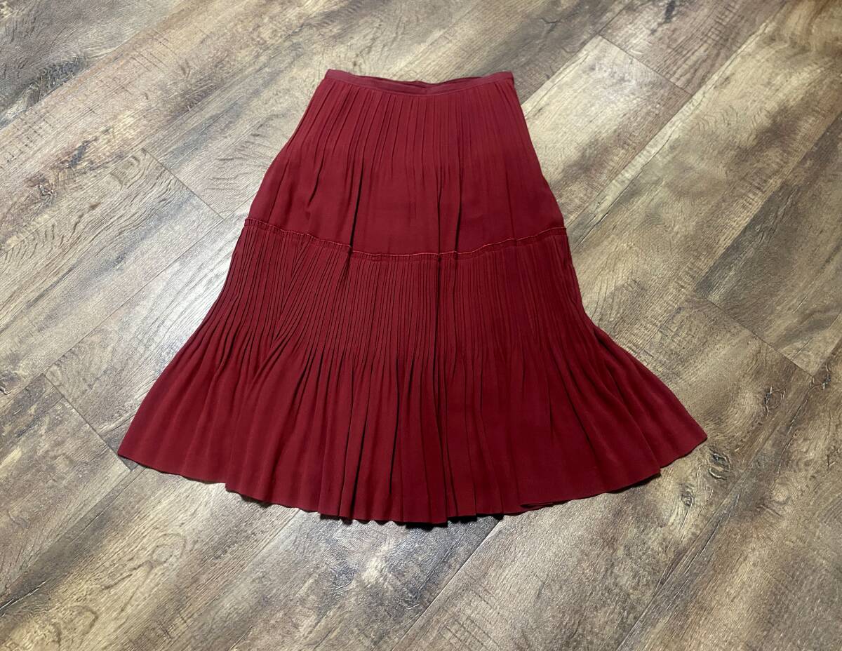 - 福祉バザー SmartPink★細プリーツシフォンスカート38/レンガ色
