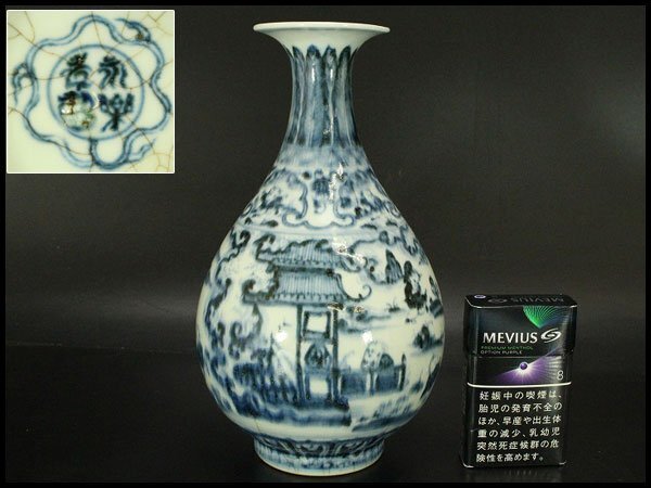 > 【銀閣】中国美術 青花 古染付 唐物 唐子紋 瓶 高22.5cm 永楽年製 旧家蔵出 送料無料(LC516)