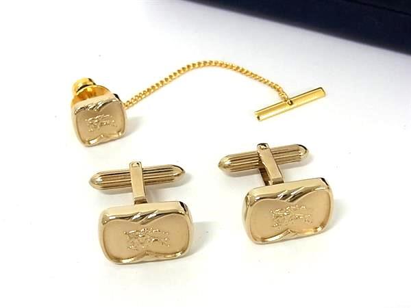 > ■美品■ Burberrys バーバリーズ タイチェーン カフスボタン カフリンクス ビジネス 紳士 メンズ 2点セット ゴールド系 DK6610