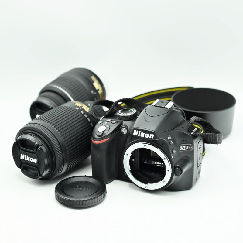 - 動作確認済 Nikon ニコン D3200 ダブルズームキット ボディ / 18-55mm F3.5-5.6 / 55-200mm F4-5.6 ブラック デジタル一眼レフ M10-t025