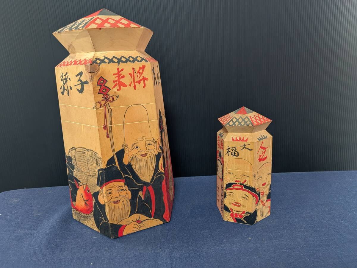 - こけし 六角柱の置物 蘇民将来符 信濃国分寺の八日堂縁日 大 小 2本